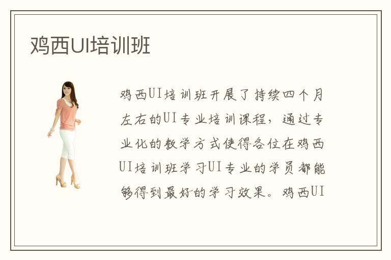 UI设计已经成为热门的专业之一,受到不少学子的喜爱,学生们选择这个专业主要是因为UI设计是一个比较容易上手和入门的专业,对于初学者而言难度没有那么大,另外,鸡西UI培训学校的培训效果也比较出色。鸡西UI培训班丰富学生的眼界,帮助不少学子打开计算机知识的大门。鸡西UI培训机构有哪些内容?鸡西UI培训学校情况官方介绍包括什么?