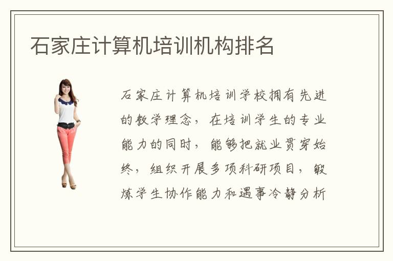 石家庄市位于我国的石家庄省,是一个民风纯朴、历史悠久的古老城市。随着现代社会的计算机经济水平直线上升的发展趋势,石家庄市也开始意识到计算机专业人才是当今社会的紧缺性技术型人才,逐渐注重对计算机专业学员的培养,石家庄地区开设了许多家专业的互联网计算机培训学校,丰富的计算机相关课程,吸引了大批学习来学习it专业。那么,石家庄计算机培训机构到底哪家好呢?