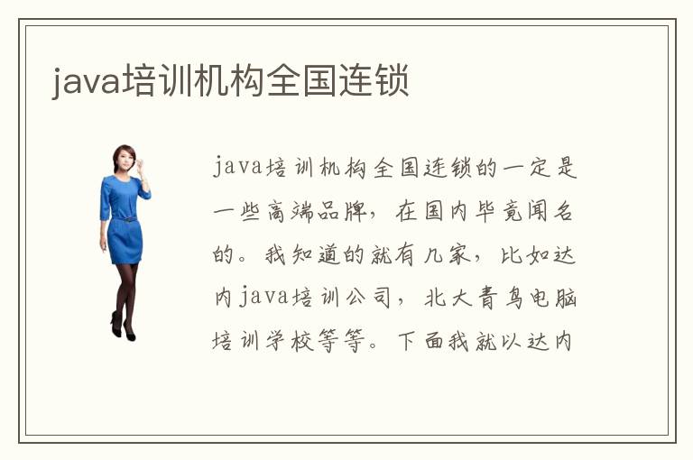 java培训机构全国连锁的一定是一些高端品牌,在国内毕竟闻名的。我知道的就有几家,比如达内java培训公司,北大青鸟电脑培训学校等等。下面我就以达内java培训公司为例子,给大家讲解一下达内的相关信息吧。达内作为国内知名的java培训机构,在全国开设了一百多家分公司,培养了大批优秀的java设计工程师。师资一流,教学一流,就业一流等均为达内赢得了好口碑。