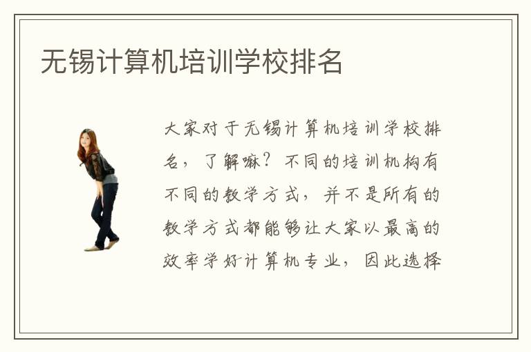 大家对于无锡计算机培训计算机培训学校排名,了解嘛?不同的培训机构有不同的教学方式,并不是所有的教学方式都能够让大家以最高的效率学好计算机专业,因此选择一家具有实力的培训机构是很重要的。选择培训机构需要从多发面的因素加以考虑,比如说了解这家培训机构的口碑如何?这家培训机构的师资力量靠不靠谱?等等,当然,学员的就业方面也是很值得考察、很值得筛选的方面。