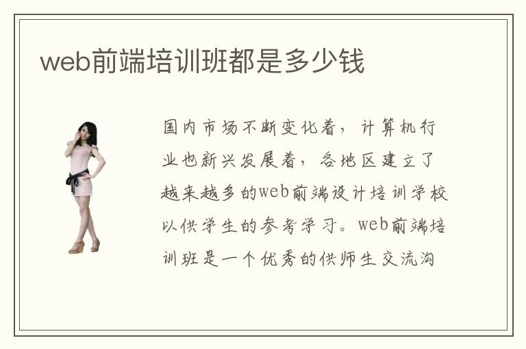 国内市场不断变化着,计算机行业也新兴发展着,各地区建立了越来越多的web前端设计培训学校以供学生的参考学习。web前端培训班是一个优秀的供师生交流沟通、可以零距离接触的线下平台,方便学生更好地学习,方便老师更好地进行培训工作。web前端培训班都是多少钱?web前端培训班平均培训费用是多少?web前端培训班在国内大概的学费水平是多少?