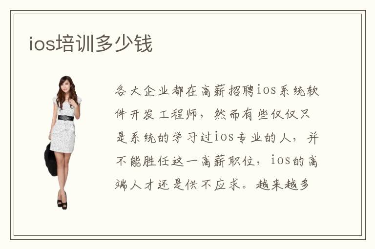 各大企业都在高薪招聘ios系统软件开发工程师,然而有些仅仅只是系统的学习过ios专业的人,并不能胜任这一高薪职位,ios的高端人才还是供不应求。越来越多的人想要去专业的ios培训机构进行学习,不管是零基础的学员还是学过ios想来提高专业技能的学员,大家都能够通过培训机构这四个月左右的时间,学好ios,获得更多的关于ios的经验。那么,ios培训多少钱呢?