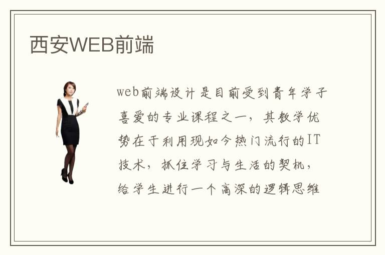 web前端设计是目前受到青年学子喜爱的专业课程之一,其教学优势在于利用现如今热门流行的IT技术,抓住学习与生活的契机,给学生进行一个高深的逻辑思维的训练。西安WEB前端设计好学吗?学习西安web前端设计的过程中一旦产生了或大或小、或多或少的疑问,都可以在西安WEB前端设计学校的培训老师中一起交流。西安地区WEB前端培训机构哪家优秀?