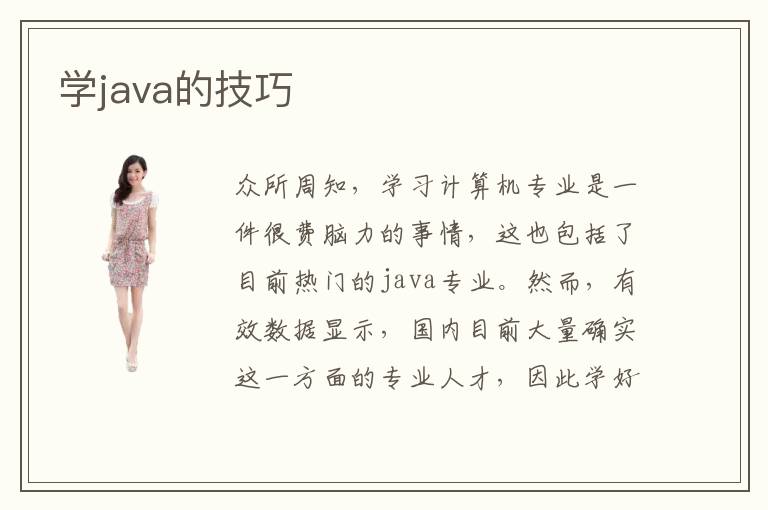 众所周知,学习计算机专业是一件很费脑力的事情,这也包括了目前热门的java专业。然而,有效数据显示,国内目前大量确实这一方面的专业人才,因此学好java一定能给自己的未来就业带来保障。学习不能死板,需要一定的技巧,这样才能让你的学习事半功倍。那么,你知道学java的技巧是什么吗?北大青鸟java培训学校,名师授课教给你独特的学习技巧,让你成为优秀的java工程师。