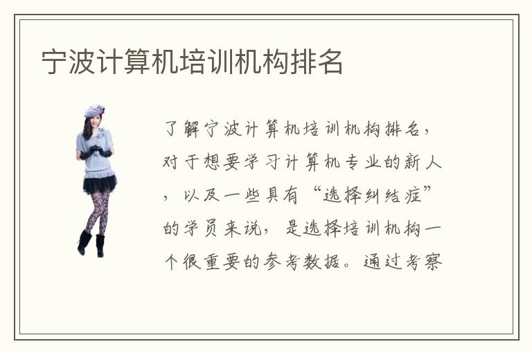 了解宁波计算机培训机构排名,对于想要学习计算机专业的新人,以及一些具有“选择纠结症”的学员来说,是选择培训机构一个很重要的参考数据。通过考察各个培训机构的口碑问题、师资力量、教学环境等方面,进行反复对比、筛选,从而得出了计算机培训机构排名表。因此,就综合性质而言,排行榜上前几名的培训机构,是很适合广大学员接受专业it教育的学校。