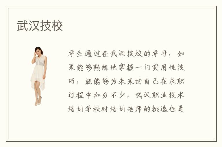 武汉市位于我国的武汉省,而这就是作为国内经济开发与科技进步排名前列的城市,想必对于技术型人才的培养这方面也是很重视的。要知道技术型人才的发展将会决定一个城市的发展,因此武汉技校的成立自然是很有必要的。武汉技校是目前成立的大家心目中比较靠谱的一所专业技术培训学校,开设了丰富的专业课程,对于每门专业的课程安排也是尽可能的依照社会对于该专业相关的技术要求来的。
