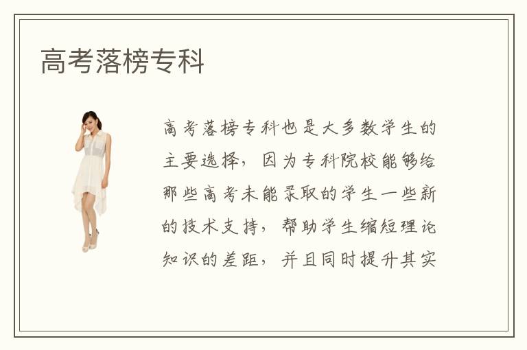 高考落榜专科也是大多数学生的主要选择,因为专科院校能够给那些高考未能录取的学生一些新的技术支持,帮助学生缩短理论知识的差距,并且同时提升其实践运用技巧能力。高考落榜上专科院校是不是一个比较好的出路?高考落榜后其实出路也是不少的,但是每个人要根据自身实际情况,进行反复斟酌。高考落榜生能不能上专科学校?高考落榜生上专科好不好?