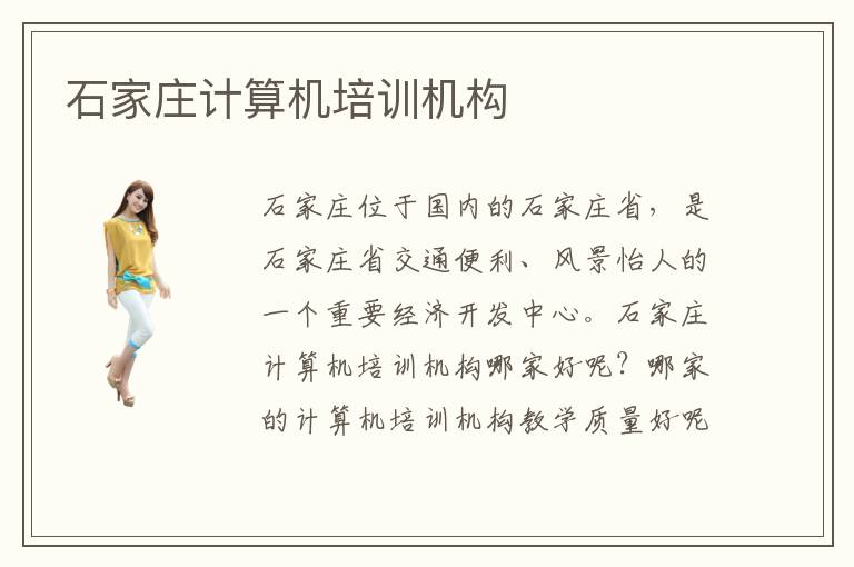 我想石家庄是大家再熟悉不过的城市了吧?石家庄这个城市不论是交通,还是经济发展等各个方面,都是国内其他城市都远不及的。在石家庄的街头经常可以看到人们忙碌工作的身影,很多年轻人都想石家庄占得一席之地。然而想要在石家庄的各行各业立足,并不容易,因此也就出现了“北漂一族”。计算机行业也是石家庄发展前景最广阔的行业之一,你知道石家庄计算机培训排名吗?