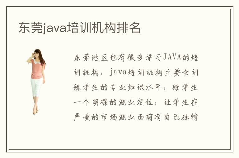 东莞地区也有很多学习JAVA的培训机构,java培训机构主要会训练学生的专业知识水平,给学生一个明确的就业定位,让学生在严峻的市场就业面前有自己独特的就业优势。东莞JAVA培训机构排名是什么样的?东莞java培训班排名情况怎么去了解?东莞JAVA培训机构各家口碑怎么样?东莞JAVA培训机构是热爱JAVA脚本编辑的人的交流沟通的平台。