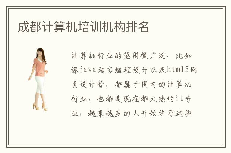 计算机行业的范围很广泛,比如像java语言编程设计以及html5网页设计等,都属于国内的计算机行业,也都是现在都大热的it专业,越来越多的人开始学习这些专业。然而计算机专业的学习是枯燥无味的,我想自学这条道路不适合绝大多数人,很多人在自学的过程中,因为基础不扎实的原因,学习中遇到很多问题后选择了放弃。选择靠谱的培训机构才是学习it最正确的途径,那么,成都计算机培训计算机培训机构排名,你了解嘛?