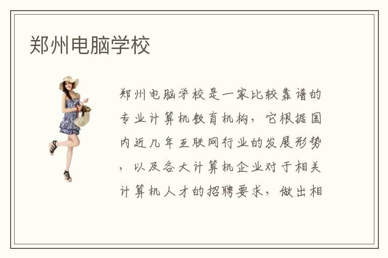 郑州电脑学校是一家比较靠谱的专业计算机教育机构,它根据国内近几年互联网行业的发展形势,以及各大计算机企业对于相关计算机人才的招聘要求,做出相应的培训课程调整,保证学员可以学习到最新的计算机专业知识,并且讲究教学模式的循序渐进,坚持从计算机语法基础开始教学培训,坚持以小班授课的教学模式,鼓励学生积极提出问题并完美的解决它。