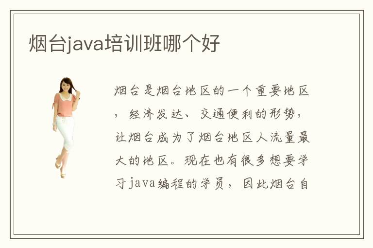 烟台是烟台地区的一个重要地区,经济发达、交通便利的形势,让烟台成为了烟台地区人流量最大的地区。现在也有很多想要学习java编程的学员,因此烟台自然成立了很多专业的互联网培训机构,也开设了java相关的课程,方便广大学员来学习。那么,烟台java培训班哪个好呢?这个问题的答案还是需要各位学员自己去寻找,最重要一点是要注意培训机构是否有学员的就业保障协议。