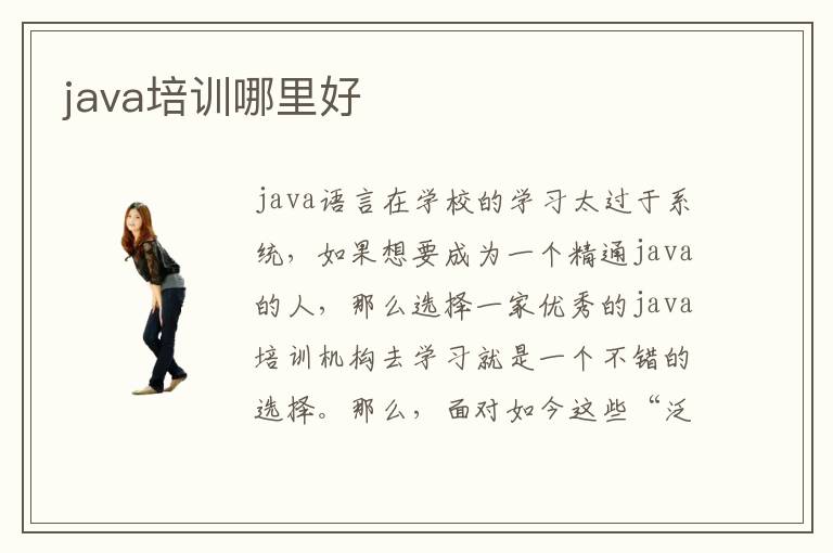 知道java培训哪里最好吗?我认为达内java培训机构就很不错。达内java培训机构拥有强专业,严要求的教师团队,拥有与时俱进不断更新的教学设备,可以高效率的学习java,在最短的时间精通java的相关技能知识。大家最担心的莫过于是就业这一方面,在就业这一方面,学员无需担心。达内保障每个学员的就业问题,一对一就业指导,提供java工程师面试相关技巧。