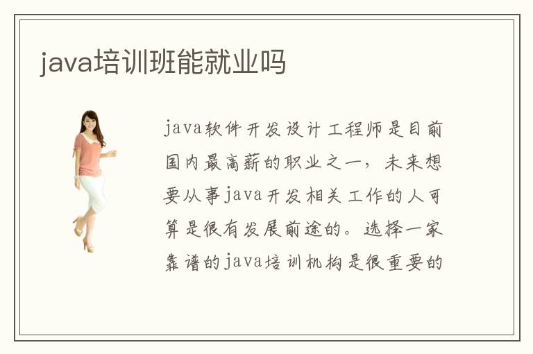 java软件开发设计工程师是目前国内最高薪的职业之一,未来想要从事java开发相关工作的人可算是很有发展前途的。选择一家靠谱的java培训机构是很重要的,高端的品牌,一流的教学质量,强大的师资力量,浓郁的学习氛围等等,都能够让各位学员的学习道路更加通畅。那么,java培训班能就业吗?这个问题的答案自然是能,培训机构还会贴心为学员开设面试指导课程。