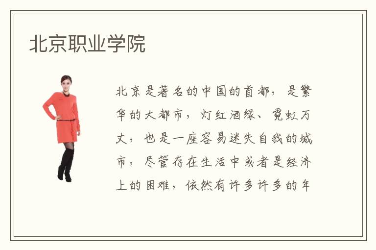 北京是著名的中国的首都,是繁华的大都市,灯红酒绿、霓虹万丈,也是一座容易迷失自我的城市,尽管存在生活中或者是经济上的困难,依然有许多许多的年轻学生选择开始自己的北漂生活。包括在北京职业学院学习发展,这些都是大家为自己选择的道路,是为自己未来的发展而做出的铺垫。北京职业技校发展效率高。北京职业技术训练机构哪家强一些?