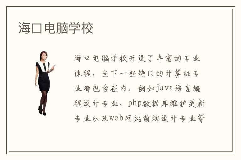 海口电脑培训学校一直坚持着“一切都以学员们的就业为根本”的教学原则,根据国内各大计算机企业对于相关专业技术型人才的招聘需求,不断改善更新专业课程培训内容,努力为在海口电脑培训学校学习这个技术的学员提供最先进的教学课程。通过短短几年的坚持,海口电脑培训学校已经成为了海口数一数二的计算机培训学校,为海口计算机市场培养了一批又一批优秀的计算机技术人才。