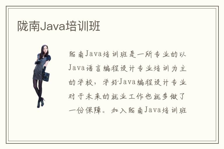 陇南Java培训班是一所专业的以Java语言编程设计专业培训为主的学校,学好Java编程设计专业对于未来的就业工作也就多做了一份保障。加入陇南Java培训班接受专业的Java课程培训是学好Java专业又快又好的方式之一,并且陇南Java培训班与国内多家知名的互联网企业都有合作,也给了陇南Java培训班的在校学员更多就业的计机会,为学员们的就业问题提供了很好的保障。