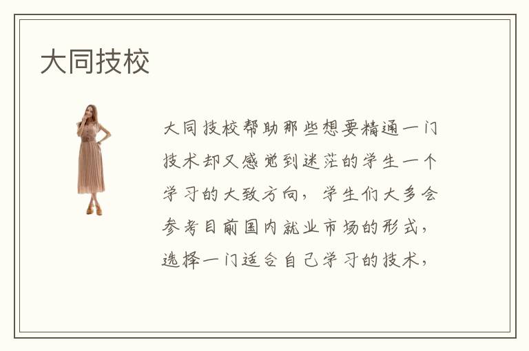 掌握好一门具有广阔发展前景的专业对于未来的就业是很有帮助的,专业技术的学习效果与很多因素都有关联,不好的学习效果也并不是所有原因都是专业技术培训学校的教学不靠谱所致。当然在口碑比较好的专业技术培训学校进行这样课程的学习是能够让大家放心的,那么大同技校的教学口碑好不好呢?大同技校成立至今多年,已经顺利培养了很多各行各业的优秀技术型人才,教学口碑都是比较良好的。