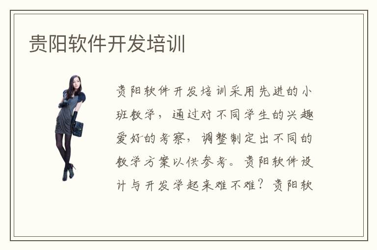 贵阳软件开发培训采用先进的小班教学,通过对不同学生的兴趣爱好的考察,调整制定出不同的教学方案以供参考。贵阳软件设计与开发学起来难不难?贵阳软件设计与开发专业汇集了教育人才,努力把学生的枯燥的学习教导向兴趣教学靠拢,使得学生的注意力更为集中。贵阳软件开发培训机构在哪里?贵阳计算机培训机构大多在什么地方?贵阳计算机培训班地理位置在哪里?