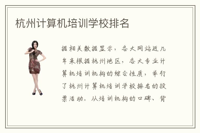据相关数据显示,各大网站近几年来根据杭州地区,各大专业计算机培训机构的综合性质,举行了杭州计算机培训学校排名的投票活动。从培训机构的口碑、背景、师资力量、教学水平等方面,进行反复的对比、筛选,足以见得,培训机构排名的真实性很强。因此,这个排名的数据可以作为广大杭州地区想要学习计算机专业的学生,对于培训机构选择的重要参考依据。