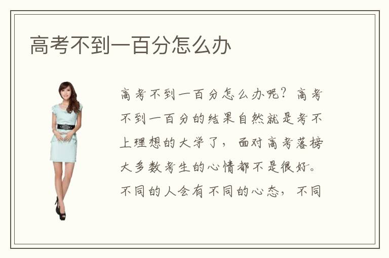 高考不到一百分怎么办呢?高考不到一百分的结果自然就是考不上理想的大学了,面对高考落榜大多数考生的心情都不是很好。不同的人会有不同的心态,不同的心态会产生不同的做法,这些做法也就决定了自己的未来。有些人在高考落榜以后就会变得自暴自弃,对自己美好未来的憧憬也就不存在了。还有些人会努力调整自己的心态,选择一门具有发展前景的并且适合自己的专业技术去学习。