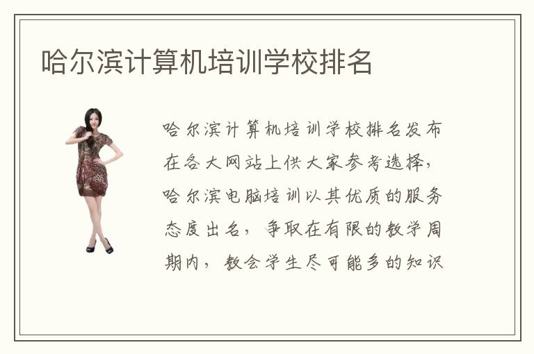 哈尔滨计算机培训学校排名发布在各大网站上供大家参考选择,哈尔滨电脑培训以其优质的服务态度出名,争取在有限的教学周期内,教会学生尽可能多的知识,让学生可以获得学业上的自信心。哈尔滨电脑教学宗旨是教育为主、就业为本,在市场竞争如此严峻的时刻,一个岗位甚至就有多人共同参与竞争,而哈尔滨电脑培训学校积极与企业取得联系,保证学生就业率。