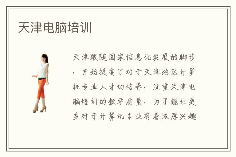 说到天津,我想大家一定会不约而同的想到天津的美食系列,然而天津不仅在饮食方面比较注重,近几年还开始注重对于天津地区计算机专业人才的培养。造成这一现象都是因为,从各大招聘网站上显示,天津各大计算机企业都在大量招聘优秀的计算机程序员,可见it市场对于人才的渴求。而天津电脑培训学校也成了大家想要学习计算机专业知识或是提高计算机技能,最常用的途径。