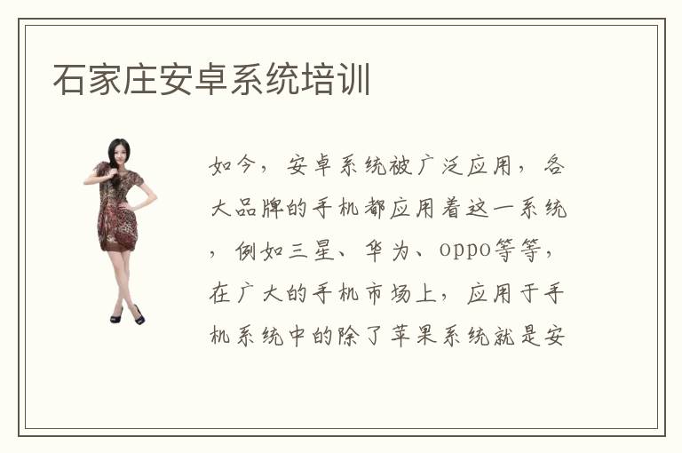如今,安卓系统被广泛应用,各大品牌的手机都应用着这一系统,例如三星、华为、oppo等等,在广大的手机市场上,应用于手机系统中的除了苹果系统就是安卓系统了,并且安卓系统应用的最为广泛,用户对其评价也很高。面对着这么大的需求,石家庄增添了很多安卓系统培训学校,以便于一心求学的人们接受培训,也促进了石家庄地区对于安卓系统的研究。