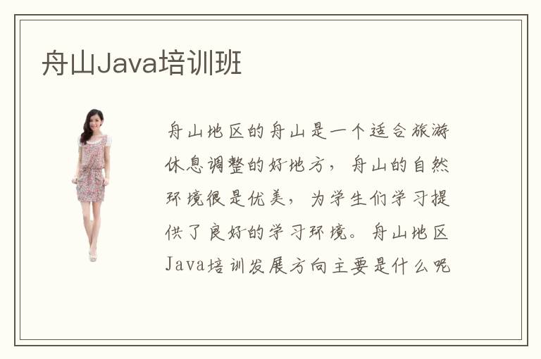舟山地区的舟山是一个适合旅游休息调整的好地方,舟山的自然环境很是优美,为学生们学习提供了良好的学习环境。舟山地区Java培训发展方向主要是什么呢?舟山Java培训班的发展方向主要分为两大方面,其一,是学校发展专业教育培训功能,成为国内著名的培训机构,其二,是增加舟山Java脚本编辑设计师数量,为学校本身赢得良好的口碑效益。