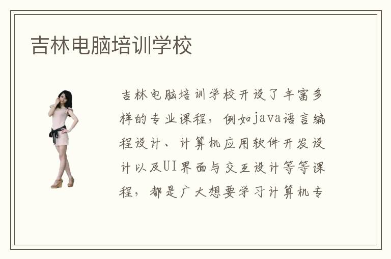 互联网是现代社会的一个新名词,信息化社会是未来的大势所向,互联网的成立也在跨越地域,不断拉进人与人之间的距离,在生活与工作学习等方面都带了很大的便利。吉林电脑学校就是根据互联网的发展趋势,根据各行各业对于互联网技术型人才的渴求,进行相关专业课程的培训。包括当下热门的java语言编程设计、php数据库维护更新以及web网站前端设计等等。