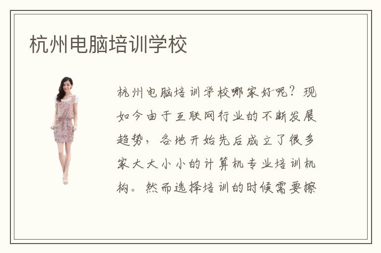 杭州电脑培训学校哪家好呢?现如今由于互联网行业的不断发展趋势,各地开始先后成立了很多家大大小小的计算机专业培训机构。然而选择培训的时候需要擦亮眼睛,慎重的选择才能在最合适的环境中、更高效率的学好计算机专业。有些培训机构主张华丽的宣传包装,吸引了大批学员去学习,然而却不能用高质量的教学水平,让学员信服。因此浪费了学员的培训费用以及大把时间。