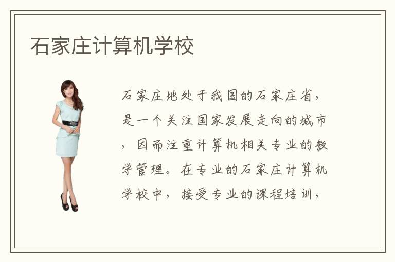 石家庄地处于我国的石家庄省,是一个关注国家发展走向的城市,因而注重计算机相关专业的教学管理。在专业的石家庄计算机学校中,接受专业的课程培训,是最快最好的学会it技术的途径。石家庄计算机学校会根据成员的基础不同以及时间安排,人性化的安排调整课程,努力做到与学生的生活时间不冲突,不占用学生的上课与工作时间,让学生享受事半功倍的学习效果。