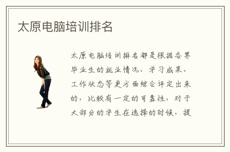 日新月异飞速发展的世界催促着我们也要不断发展,企业、公司、社会对我们的要求越来越严格,在这样强有力的竞争环境中,我们就得不断蜕变不断成长,因为我们要想适应世界必须要变强。太原地区作为东北经济支柱,自然是需要不断地科技灌输。太原电脑培训学校设立了不少,给我们在选择时加大了难度。太原电脑培训哪家强?太原电脑培训学校有哪些?