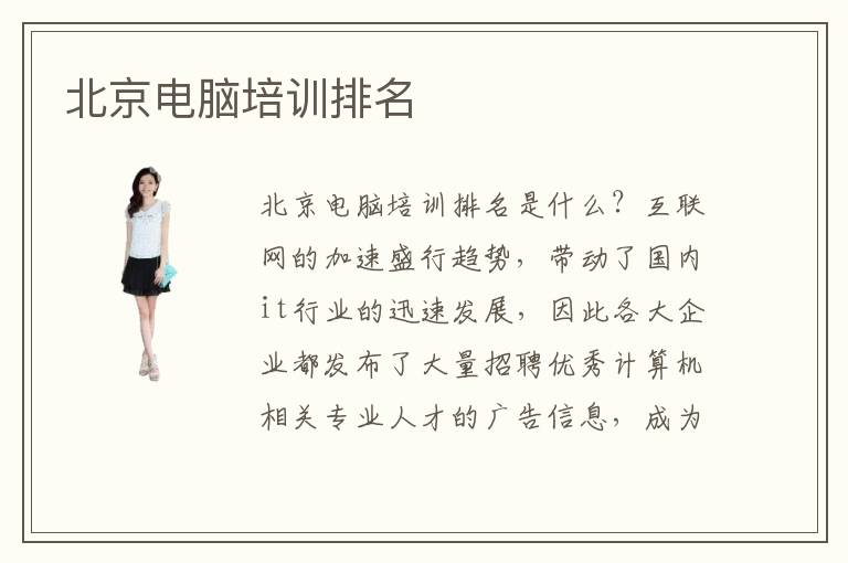北京电脑培训排名是什么?互联网的加速盛行趋势,带动了国内it行业的迅速发展,因此各大企业都发布了大量招聘优秀计算机相关专业人才的广告信息,成为了it行业最紧缺的技术型人才。学习计算机专业的人越来越多,然而从众多的计算机培训机构中选择一家靠谱的、有实力的培训机构是一件比较复杂的事情,需要了解培训机构的口碑怎样,以及师资力量强不强。