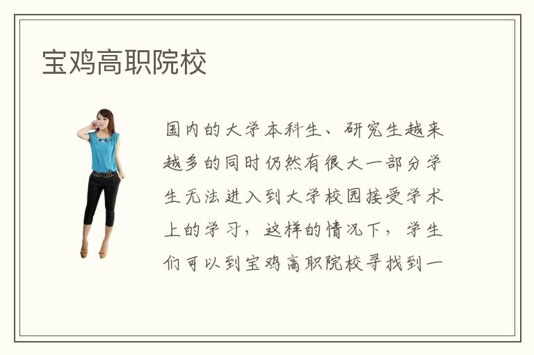 高职院校是很多在高考中落榜的学生所选择的学校,并不是说高职院校的教学质量不过关,而是因为高职院校与大学在名气上的差距。当然也存在着一些口碑比较好的高职院校,例如宝鸡高职院校就是这样一所靠谱的技术培训学校。宝鸡高职院校开设了丰富的专业课程,专业的不同所需要学习的课程也就不同了,宝鸡高职院校贴心的为每位学员都安排了合理的课程教学,使得宝鸡高职院校在校学员的学习效果都不错。