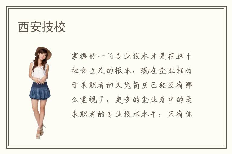 掌握好一门专业技术才是在这个社会立足的根本,现在企业相对于求职者的文凭简历已经没有那么重视了,更多的企业看中的是求职者的专业技术水平,只有你的专业技术达到企业的用人标准才会被录用,假设你的文凭学历再完美都是无用的。可见学好一门专业技术在现今这个社会是很重要的,首先要做的一点就是找到一所靠谱的专业技术培训学校,那么西安技校怎么样呢?