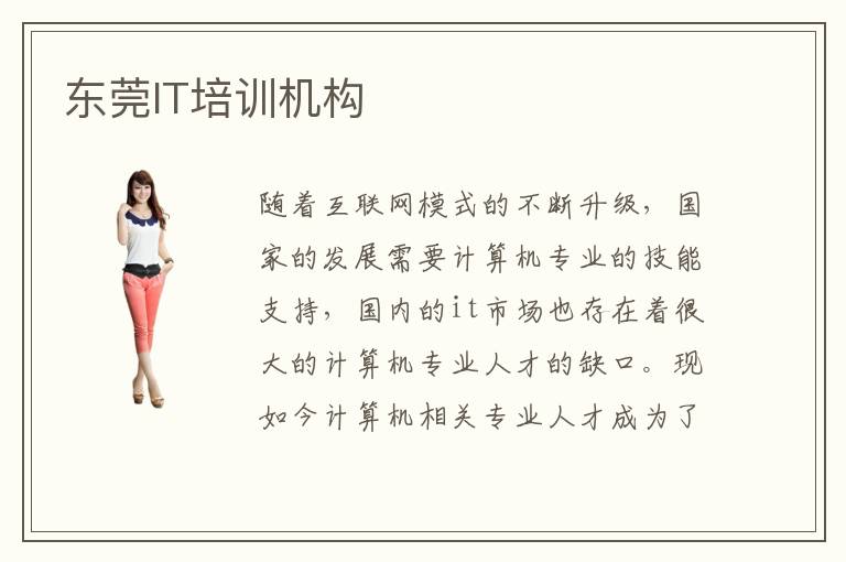 随着互联网模式的不断升级,国家的发展需要计算机专业的技能支持,国内的it市场也存在着很大的计算机专业人才的缺口。现如今计算机相关专业人才成为了当下炙手可热的职业,各大企业都在高薪招聘计算机相关专业的优秀人员,为了公司的开发运作发展,it人员的工作显得尤为重要。东莞IT培训机构就是一个东莞地区学习计算机专业的好平台。