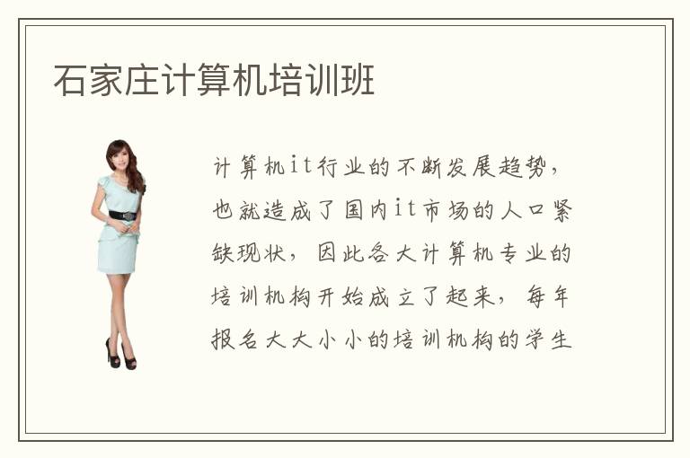 计算机it行业的不断发展趋势,也就造成了国内it市场的人口紧缺现状,因此各大计算机专业的培训机构开始成立了起来,每年报名大大小小的培训机构的学生也越来越多。各大企业的发展离不开it技术的支持,开始积极招揽计算机技术型人才,可见it专业的就业前景很广阔,选择IT专业的人也就多了起来。那么,你知道石家庄计算机培训班哪家的教学质量好、师资团队强呢?