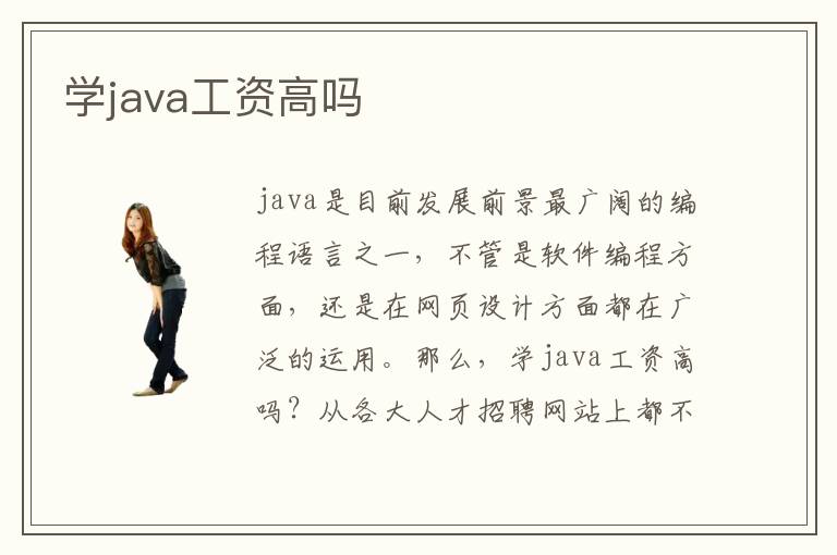 java是目前发展前景最广阔的编程语言之一,不管是软件编程方面,还是在网页设计方面都在广泛的运用。那么,学java工资高吗?从各大人才招聘网站上都不难看出,各大企业都在大量招收java开发相关方面的人员,一般工资都在大几千左右,根据应聘者经验的不同工资待遇也不同,但平均工资都在一万元左右,是国内目前最高薪的十大职业之一。
