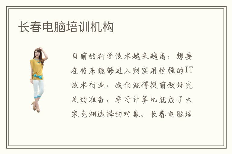 目前的科学技术越来越高,想要在将来能够进入到实用性强的IT技术行业,我们就得提前做好充足的准备,学习计算机就成了大家竞相选择的对象。长春电脑培训机构为学生提供了多方面的教学,在经过多年的培训经验奠定后,长春电脑培训班教育水平也得到了质的飞跃,为计算机教育事业做出一定的推动。长春计算机培训学校哪家好?长春电脑培训班哪家强?