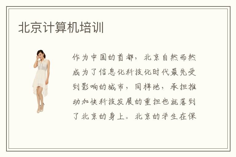 作为中国的首都,北京自然而然成为了信息化科技化时代最先受到影响的城市,同样地,承担推动加快科技发展的重担也就落到了北京的身上。北京的学生在保证自己学业完整的前提下,也会适当地考虑是否应该接触IT。北京计算机培训为不同就业需求目标的学生提供不同的专业定位。计算机电脑学习北京教育培训效率更高。计算机培训北京IT培训机构有哪些呢?