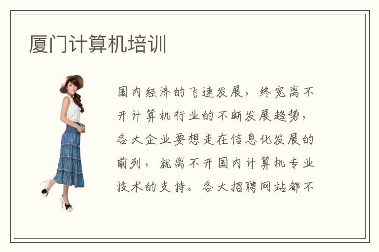 厦门是我国的经济开发中心城市,经济水平的发展也是国内数一数二的,不论是人们的生活水平,还是工作人员的薪资待遇,都是相比较其他城市较高的。计算机专业是当下最热门的专业,专业的计算机程序员也是目前最高薪的职业之一。厦门计算机培训中心是一个专门培养国内优秀的it技术型人才的平台,通过最高质量的教学方式,最先进的教学理念,更高效的完成计算机专业的学习。