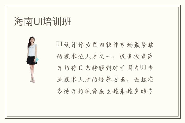 UI设计作为国内软件市场最紧缺的技术性人才之一,很多投资商开始将目光转移到对于国内UI专业技术人才的培养方面,也就在各地开始投资成立越来越多的专业UI培训机构。那么,海南UI培训班哪家的培训效果好呢?哪家专业UI培训班是人民心目中口碑最好的呢?海南UI培训班的选择也是令很多新手感到困惑的,选择一家靠谱的UI专业培训机构对于UI专业的学习有着很大的帮助。