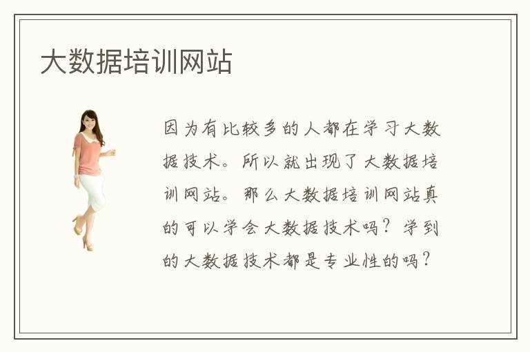 因为有比较多的人都在学习大数据技术。所以就出现了大数据培训网站。那么大数据培训网站真的可以学会大数据技术吗?学到的大数据技术都是专业性的吗? 其实在大数据培训网站当中学到的,关于大数据方面的知识都是,比较简单一点的。其实就是一些入门的一些基础的,关于大数据方面的知识。但是,大数据培训网站又是,必不可免需要去看的。因为想要了解大数据技术,就得到大数据培训网站上面进行培训,了解大数据技术。他对大数据技术有兴趣之后,再选择报一些培训班或者培训机构去学习。两者相结合学的大数据技术更加的要,专业一些。而且现在大数据培训网站上面,了解大数据技术,在以后学习大数据技术过程当中会比较的轻松一些。所以说大数据培训网站可以学到专业知识的。