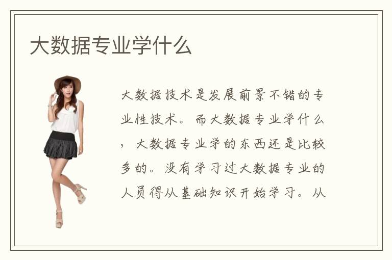 大数据技术是发展前景不错的专业性技术。而大数据专业学什么,大数据专业学的东西还是比较多的。没有学习过大数据专业的人员得从基础知识开始学习。从事大数据相关行业比较的吃香,大数据行业方面的工资待遇也非常的不错。所以大数据技术非常的值得选择。学习大数据专业在 如今社会中是比较受欢迎的。未来的发展趋势不可小瞧。很多学过大数据技术的学员都觉得大数据技术值得选择。当然,学习大数据专业学习的基础课程就非常的多。只有把最基础的关于大数据专业课程学习好,才可以真正掌握大数据专业。大数据专业是非常的受欢迎一门专业性比较强专业。大数据专业学的内容比较的多,需要有持之以恒的心才可以。想要比别人学的快,就得好好努力学。