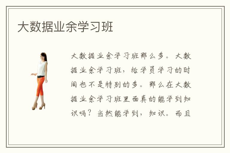 大数据业余学习班那么多。大数据业余学习班,给学员学习的时间也不是特别的多。那么在大数据业余学习班里面真的能学到知识吗?当然能学到,知识。而且学到的都是专业的关于大数据,方面的知识。大数据业余学习班,就是利用每一位,学员碎片化的时间来学习知识。他们结合这些人,的时间短,来快速的学习大数据,技术。但是业余学习班给一些当初选错专业的人,提供了机会。提供了一个以后,有无限发展的机会。因为在将来,大数据行业会非常的吃香。所以学习大数据技术,很重要。在大数据业余学习班里面学习,既可以省时间,又可以省力气。当然要到大数据业余学习班学习大数据技术啦。如果你正在后悔自己当初学习的专业没有用的上,那你现在也可以利用,业余时间学习大数据技术。