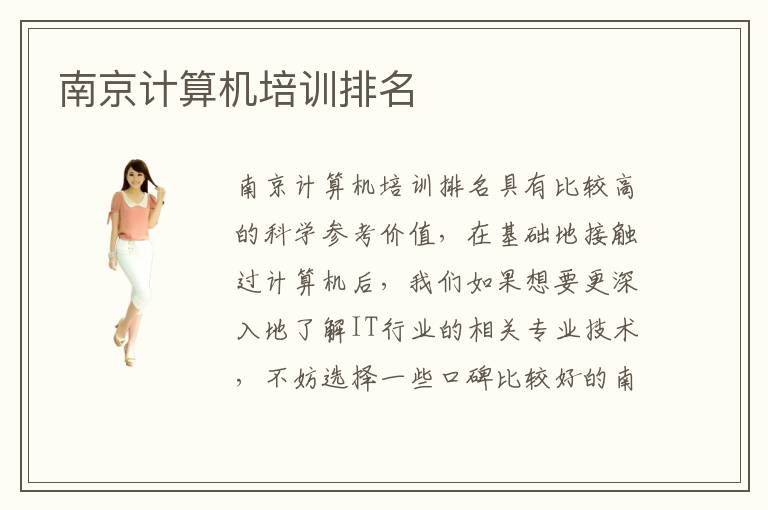 南京计算机培训计算机培训排名具有比较高的科学参考价值,在基础地接触过计算机后,我们如果想要更深入地了解IT行业的相关专业技术,不妨选择一些口碑比较好的南京电脑培训机构去接受培训。南京计算机专业培训项目内容丰富,为了更加强化学生的计算机学习情况,学校特别争取到与周边企业的合作关系,在投资资金允许的情况下,开展不少的校企合作项目,锻炼学生。