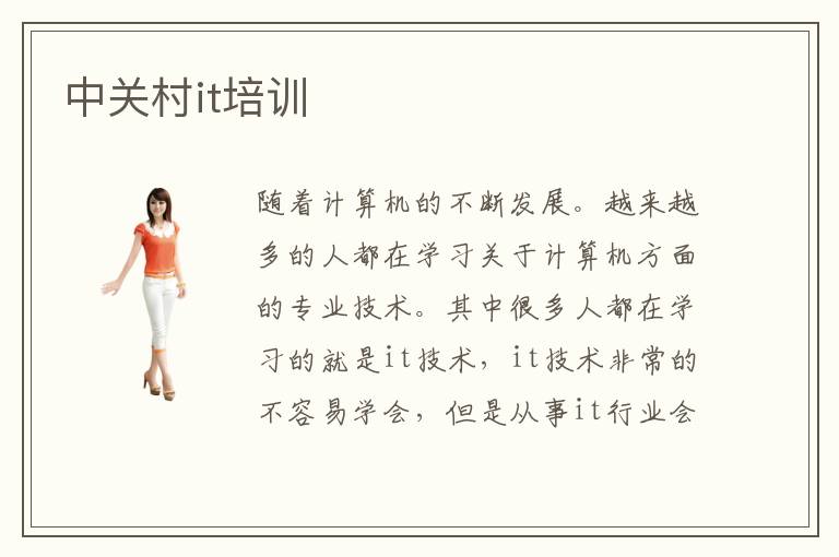 随着计算机的不断发展。越来越多的人都在学习关于计算机方面的专业技术。其中很多人都在学习的就是it技术,it技术非常的不容易学会,但是从事it行业会非常的吃香,工资待遇都非常的高。所以,越来越多的人都在学习it技术。想要快速学会it技术就得选择专业的培训机构学习,中关村it培训it培训机构就都非常的专业。这些培训机构建立之初就是为了培养人才,所以在培训人才方面有着非常多的经验。很多在中关村it培训机构培训过的学员现在都取得了不错的成就。想要快速学会it技术选择到中关村it培训机构学习是不错的方法。中关村it培训机构非常的专业,而且学员非常的多。在这里学习可以很轻松就能学会it技术。这一点可以放心就是。