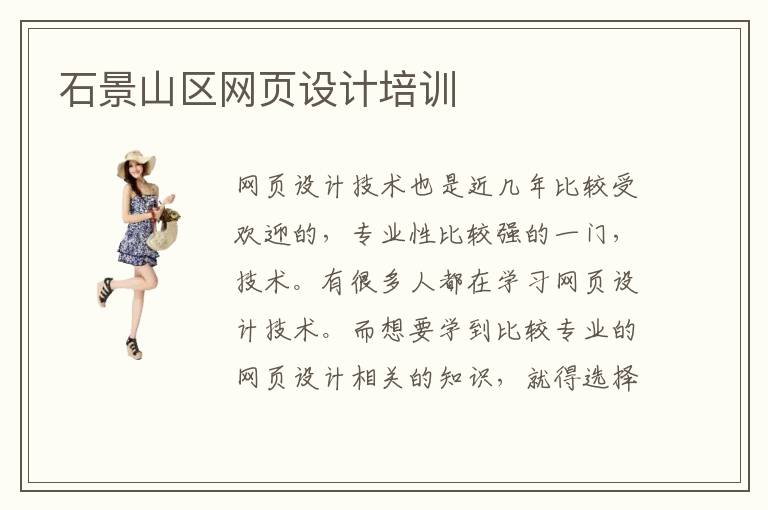 网页设计技术也是近几年比较受欢迎的,专业性比较强的一门,技术。有很多人都在学习网页设计技术。而想要学到比较专业的网页设计相关的知识,就得选择到,专业的培训机构去学习才可以。石景山区网页设计培训设计培训机构就非常的专业,而且石景山区网页设计培训机构培训水平非常的高。很多学员在石景山区网页设计培训班里面,学到了非常多的关于网页设计方面的专业知识。而且这些学员,在石景山区网页设计培训机构里面培训之后,也都找到了非常不错的工作岗位。他们都非常庆幸自己当初选择到石景山区网页设计培训机构里面学习。所以有越来越多的人都比较信赖石景山区网页设计培训班,都选择到这里学习。石景山区网页设计培训班里面的,教师们也都是比较专业的所以在这里学到的知识都是有实际用途,又专业。