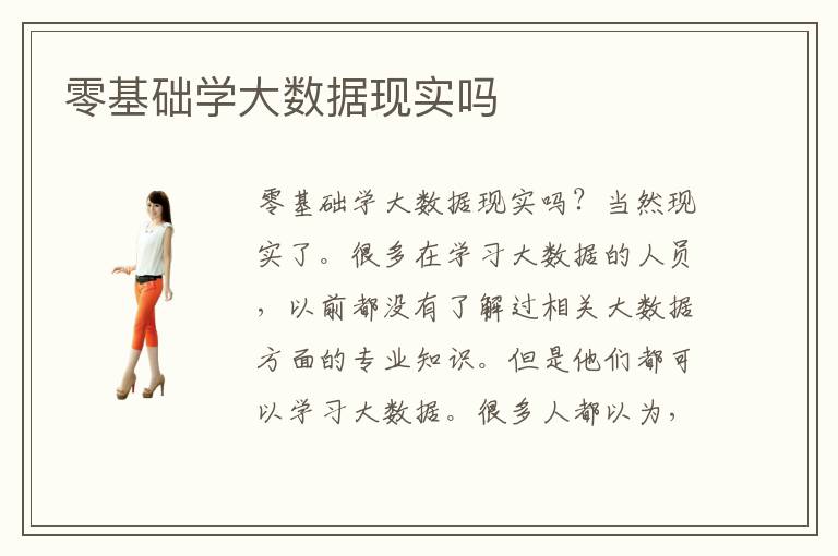 零基础学大数据现实吗?当然现实了。很多在学习大数据的人员,以前都没有了解过相关大数据方面的专业知识。但是他们都可以学习大数据。很多人都以为,没有了解过相关大数据方面的,基础知识的,不可以学习大数据。其实这种观念是错误的。零基础当然可以学习大数据。只要你对大数据有兴趣,都可以去学习大数据。只不过零基础学大数据稍微要慢一些而已。但是只要你有信心,下定决心去学习的话,一定可以学会相关大数据方面的专业技术。毕竟以后从事大数据行业,会非常的吃香。所以零基础学习大数据即使很困难,也要认真坚持下去。所以说没有什么不现实,不可以的。零基础学大数据,是非常现实的。而且很多人,都是零基础学大数据。他们也都学的比较不错。